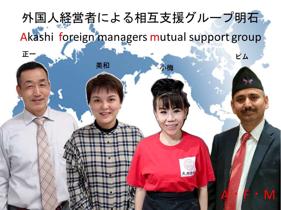 と考え、外国人経営者相互支援グループ明石(AFM)を立ち上げようとなりました。